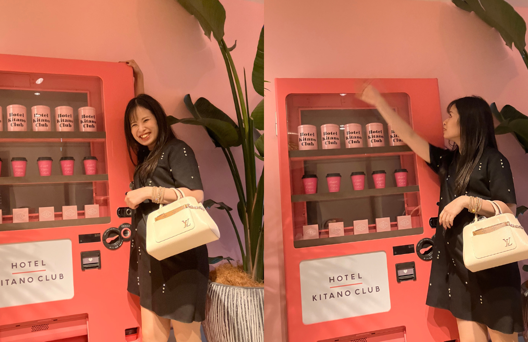 館内はピンク色のインテリアが多く、フロアの一角ではなんともレトロ可愛い自販機を発見!